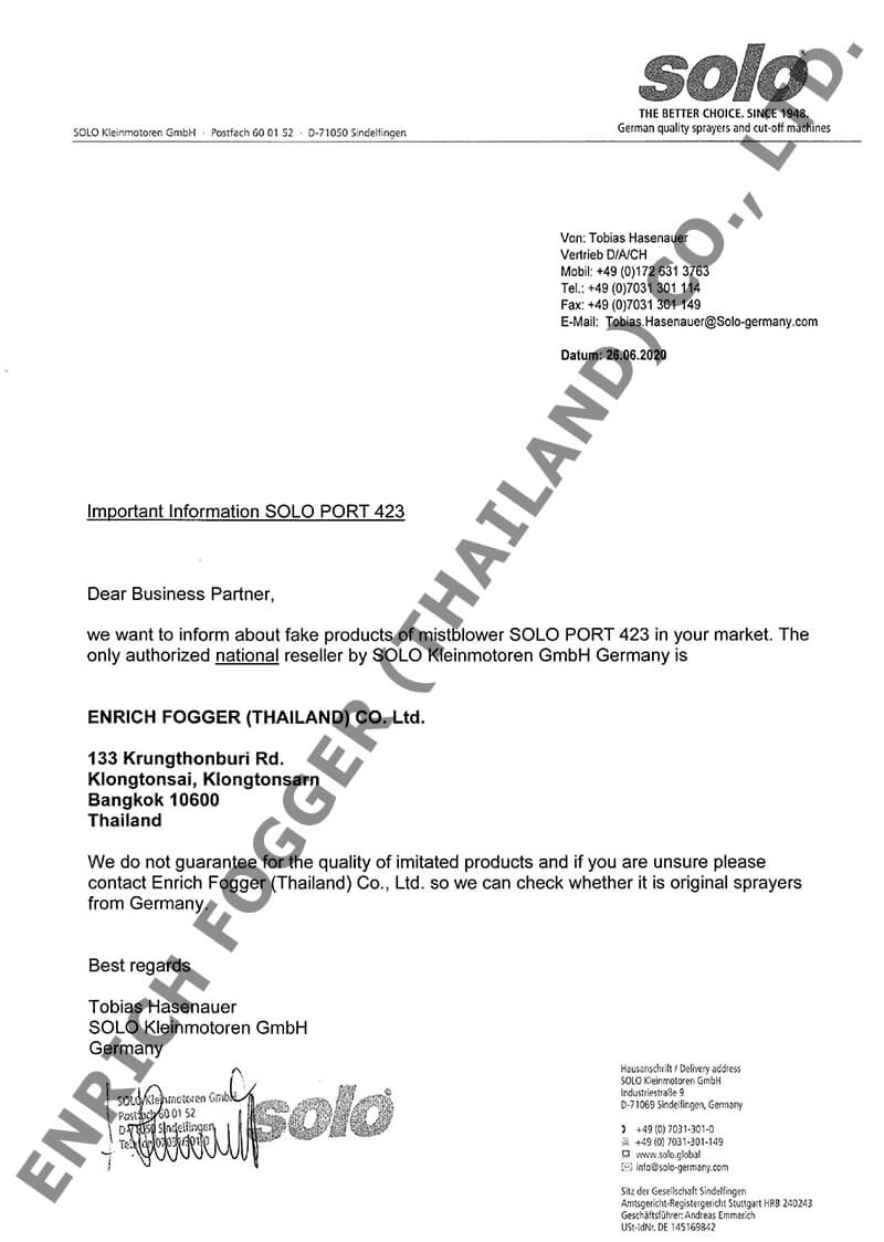 ผู้นำเข้าและตัวแทนจำหน่าย SOLO PORT 423 โดย