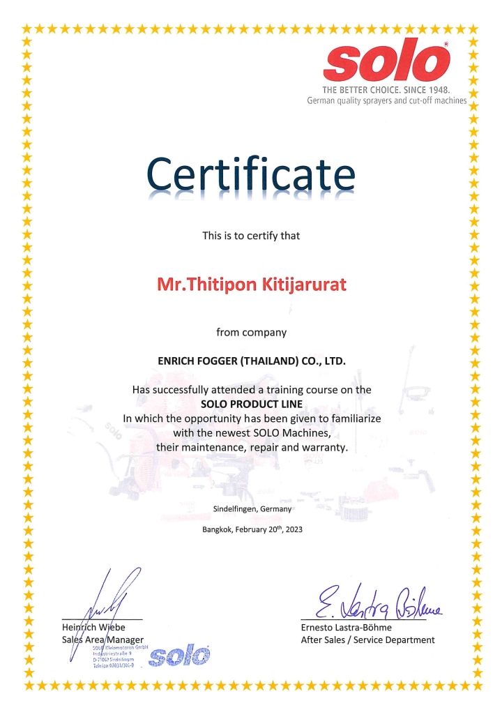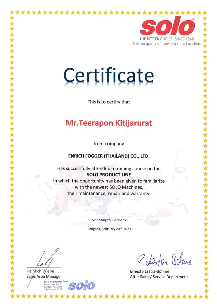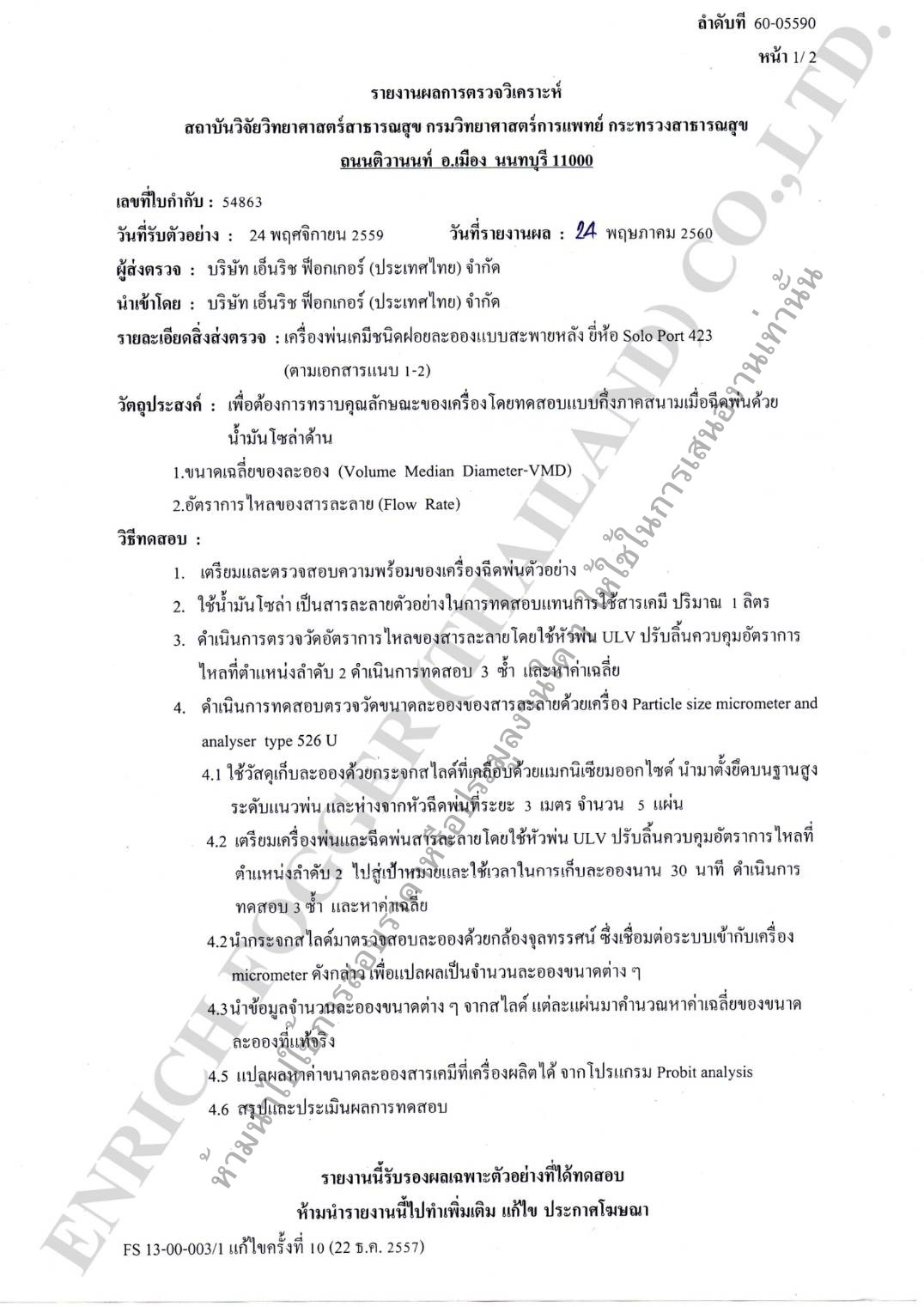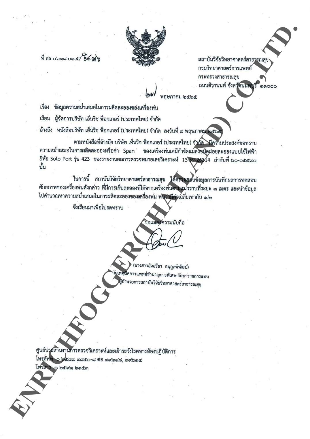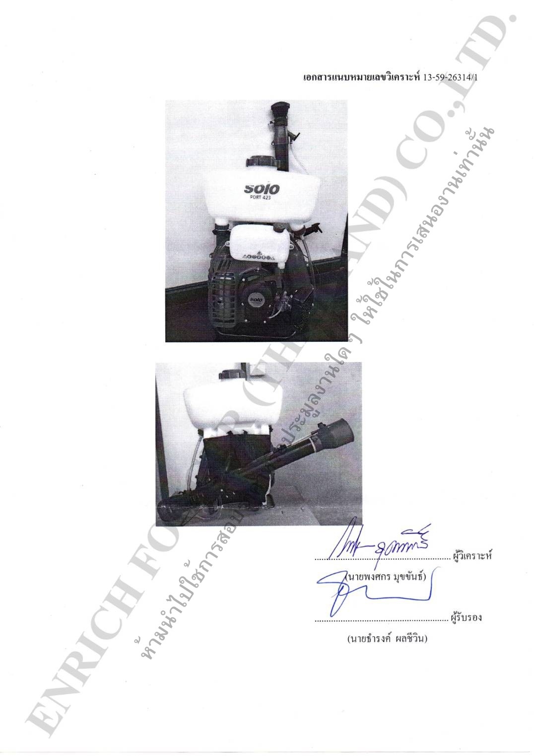 SOLO PORT 423 เครื่องพ่นฝอยละอองละเอียด ULV ชนิดสะพายหลัง มาตรฐานครุภัณฑ์ เหมาะสำหรับใช้ฉีดพ่นเพื่อฆ่าเชื้อไวรัส Covid-19 เชื้อรา เชื้อแบคทีเรีย เป็นผลิตภัณฑ์ของประเทศ เยอรมัน ที่ได้รับมาตรฐานสากล มเครื่องพ่นละอองฝอยละเอียด ULV สำหรับพ่นฆ่าเชื้อโรค เชื้อรา เชื้อไว้รัส หรือใช้พ่นฆ่าแมลงซึ่งเป็นพาหะนำโรค เช่นยุง แมลงบินและแมลงคลานในสถานที่ต่างๆ เช่น อาคารบ้านเรือน, โกดัง, สถานที่, โรงงาน, โรงแรม, โรงพยาบาล, ฟาร์มเลี้ยงสัตว์, เครื่องบิน, รถยนต์, และอื่นๆสามารถใช้ฆ่าเชื้อไวรัสและควบคุมการระบาดของโรคไข้หวัดนก (H1N1) การฆ่าเชื้อและป้องกันการระบาดของโรคหลังจากเกิดภัยพิบัติทางธรรมชาติ เช่น น้ำท่วม, แผ่นดินไหว เป็นต้น งานฆ่าเชื้อและการกำจัดแมลงในโรงงานอุตสาหกรรมอาหาร, โรงพยาบาล, ฟาร์มสัตว์, โรงเรียน, ห้างสรรพสินค้า, บ้านพักอาศัย และ อื่นๆเครื่องพ่นละอองฝอย เป็นเครื่องสเปรย์ ฉีดพ่นระบบไฟฟ้า ULV (Ultra Low Volume) ที่เป็นมิตร ต่อสิ่งแวดล้อมเหมาะสำหรับการใช้งานด้าน การฆ่าเชื้อโรค กำจัดแมลง การเกษตร และฟาร์มต่างในอาคารบ้านเรือน สถานที่ประกอบอาหาร และคอกสัตว์ใช้สำหรับฉีดพ่นยาฆ่าเชื้อโรค เหมาะกับสถานที่ต่างๆ เช่น โรงแรม โรงงาน โกดังโรงเรียน โรงพยาบาล ที่พักอาศัยร้านอาหาร รถยนต์ และฟาร์มต่างเครื่องพ่นละอองฝอย ใช้สำหรับฉีดพ่นสารเคมีกำจัดแมลง เช่น มด ยุง แมลงวัน ปลวก แมลงสาบ ไรฝุ่น เป็นต้นเหมาะที่จะนำไปใช้ได้ทั้งภายนอกและภายใน เช่น บ้านเรือน สวนอาหาร โรงเรียน โรงแรม โรงพยาบาล ห้องสัมมนาสามารถใช้ได้น้ำยาได้หลากหลายชนิด เช่น กลุ่มยากำจัดแมลงบิน แมลงคลาน ยุง มด มอด ปลวกแมลงวัน แมลงสาบ กลุ่มยากำจัดแบคทีเรีย เชื้อรา กลุ่มยากำจัดโรคระบาดใช้เพื่อควบคุมโรคติดต่อและพาหะ ป้องกันและกำจัดศัตรูต่างๆ ที่เป็นพาหะนำโรคสู่คนและสัตว์เลี้ยง เพื่อใช้ในการป้องกันสินค้าที่เก็บในห้องเก็บของ ในโรงงาน และโกดังที่เก็บผลผลิตทางการเกษตร และอาหาร เพื่อใช้ในการป้องกันพืชผลทางการเกษตร ที่ปลูกในไร่ สวน แปลงผัก และในเรือนเพาะปลูก เพื่อใช้ในการป้องกันไข้หวัด เชื้อไวรัสต่างๆ ในโรงเรียน โรงพยาบาล โรงภาพยนตร์ และอื่นๆมีวิธีการใช้งานที่ง่าย น้ำหนักเบา และมีเสียงเบา เหมาะสำหรับเจ้าหน้าที่สาธารณะสุข หรือ บริษัททำความสะอาด สามารถใช้ได้น้ำยาได้หลากหลายชนิด เช่น กลุ่มยากำจัดแมลงบิน แมลงคลาน ยุง มด มอด ปลวกแมลงวัน แมลงสาบ กลุ่มยากำจัดแบคทีเรีย เชื้อรา กลุ่มยากำจัดโรคระบาด เช่น ไข้หวัด 2009 ปากเท้าเปื่อยสามารถใช้ได้กับกลุ่มการเกษตร เช่น กำจัดแมลง พ่นปุ๋ยชนิดน้ำ ก